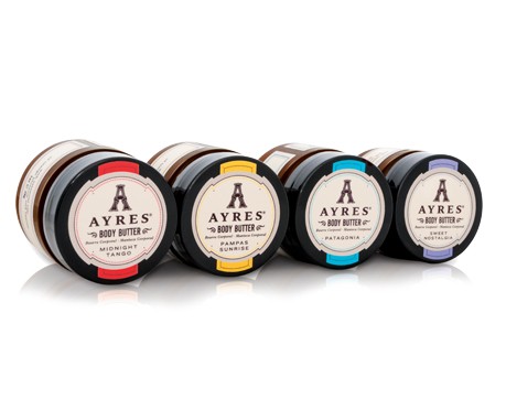 Essential oils of: Midnight Tango: Neroli, Rosemary, Ylang, Vanilla. Pampas Sunrise: Lime, Mandarin, Spearmint, Bergamot, Lemongrass, Lemon Blossom, Cedarwood, and Patchouli. Patagonia: Bergamot, Lemon, Lavender, Jasmine, Rosemary, Fir, Ylang, Oakmoss, and Patchouli. Sweet Nostalgia: Bergamot, Apricot Skin, Delicate Freesia, Jasmine, Tuberose, White Peony, Jacaranda, Arum Lilies, Gardenia.